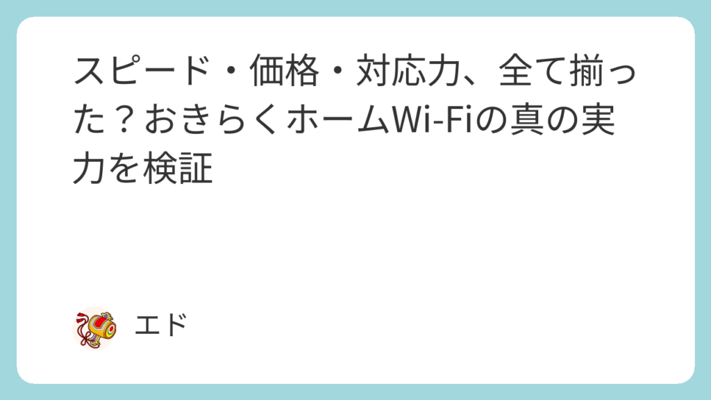 この記事では、利用者の評判をもとに、「通信スピード」「価格のコスパ」「サポート対応力」の3つの視点から『おきらくホームWi-Fi』の実力を徹底検証していきます。
